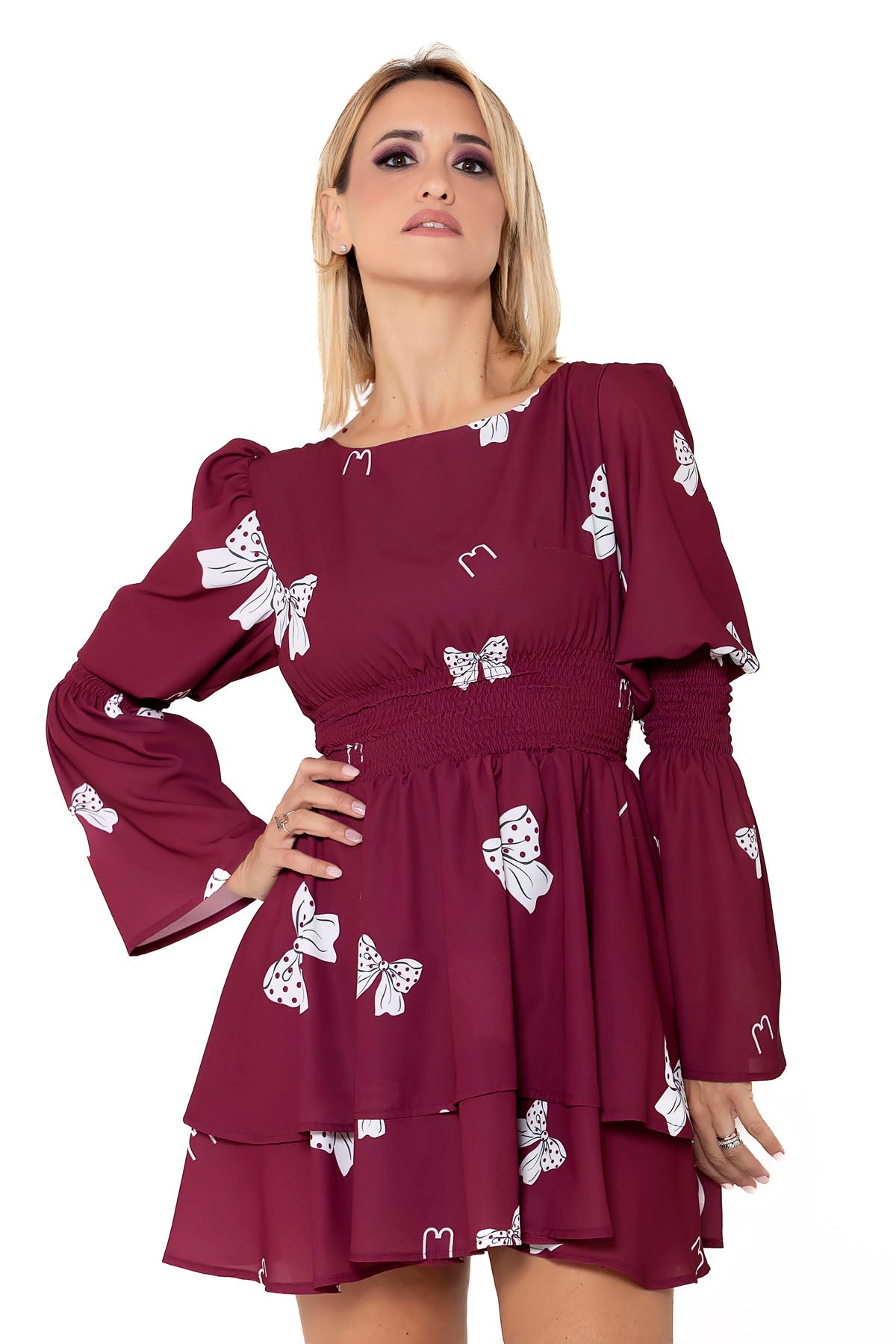 In doppia georgette cascata di fiocchi romantici su un look ricercato ricco di linee che si alternano per esaltare una femminilità senza tempo.