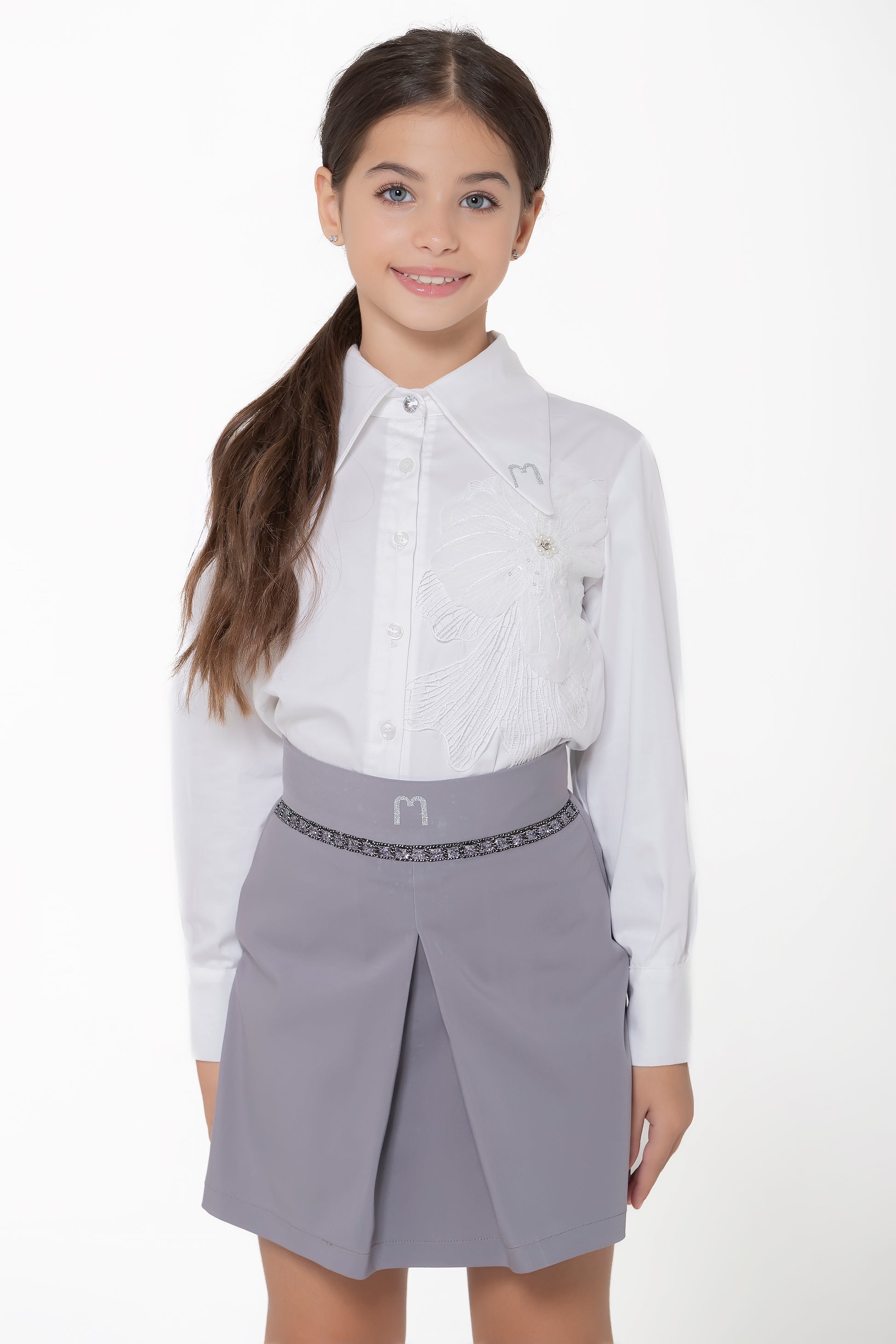 Uno short con pannello finta gonna in doppio cotone stretch con cinturino incorporato gioiello. M lurex argento.