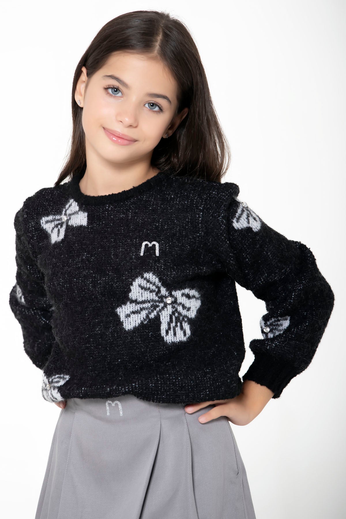 Morbidissimo mohair con fiocchi e borchiette strass . Romantico e raffinato.